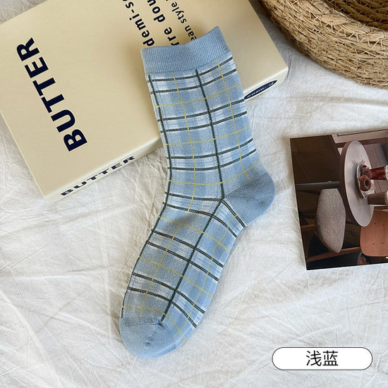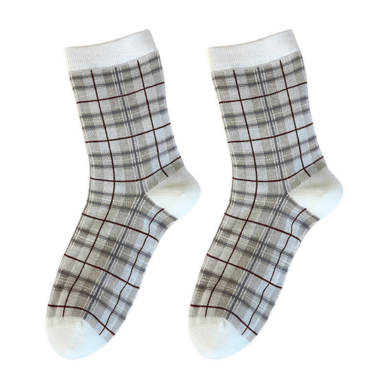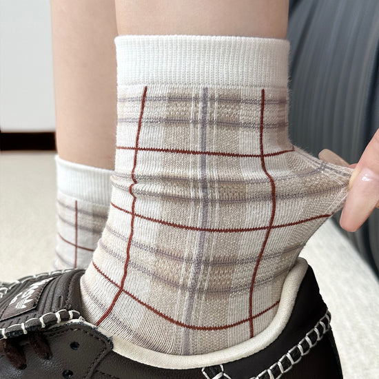 女襪|復古格子襪子女ins潮學院風甜美百搭中筒襪棉質吸汗透氣堆堆襪「CX805」25.10-1