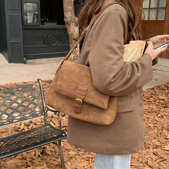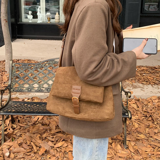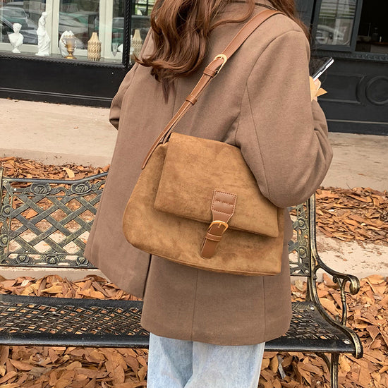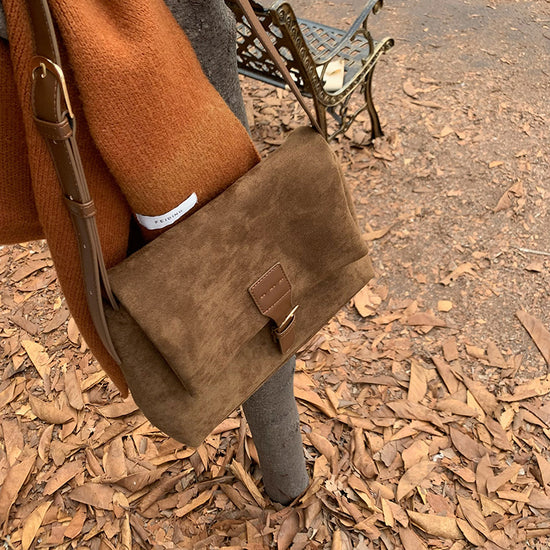 日韓流行|2024韓版女包秋冬新款復古氣質絨面單肩腋下包休閒小方包斜挎包「D8603」24.10-1