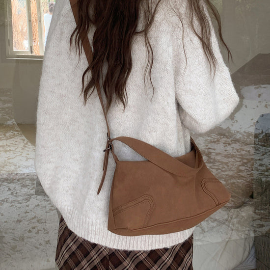 日韓流行|小眾設計復古百搭麂皮絨腋下包秋冬韓版時尚磨砂質感單肩斜挎包女「D8927」24.11-1