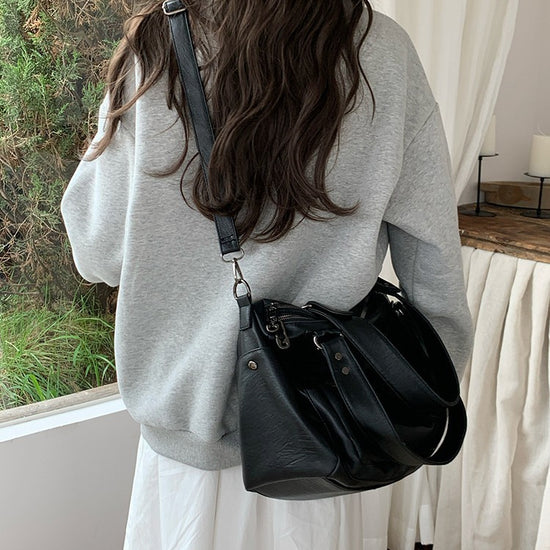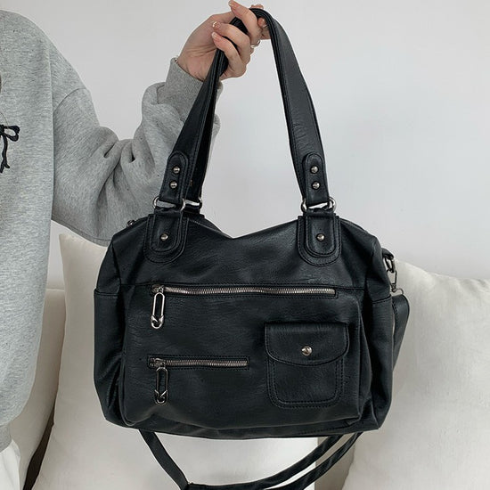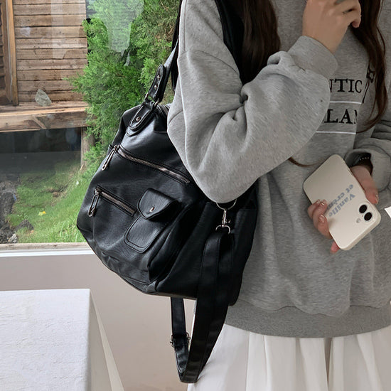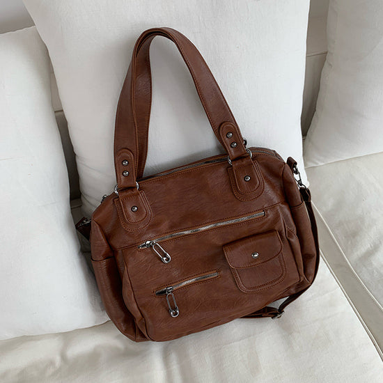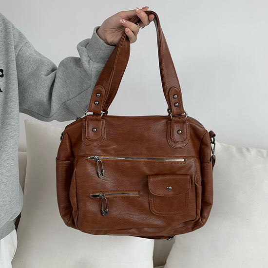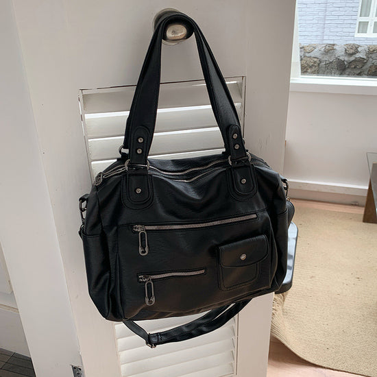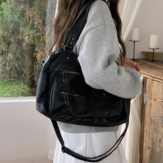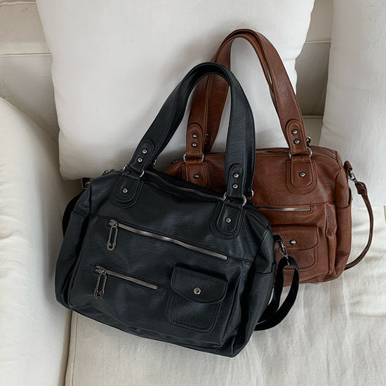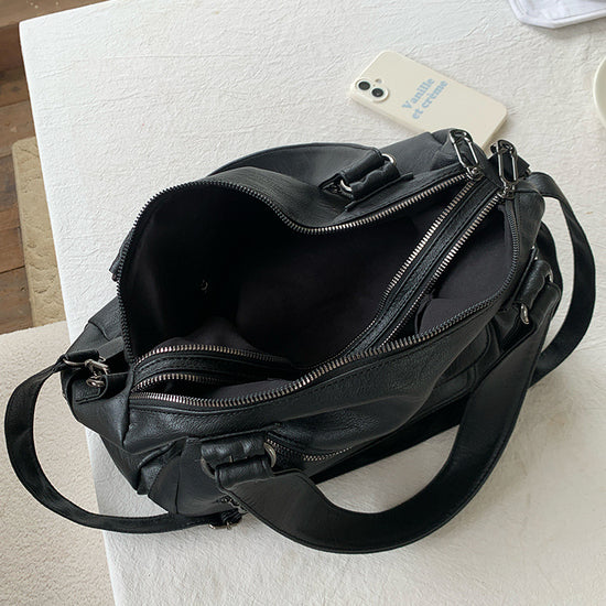日韓流行|多拉鍊機車包包復古出差行李包托特包旅行包大容量手提單肩斜挎包「D9001」25.06-1