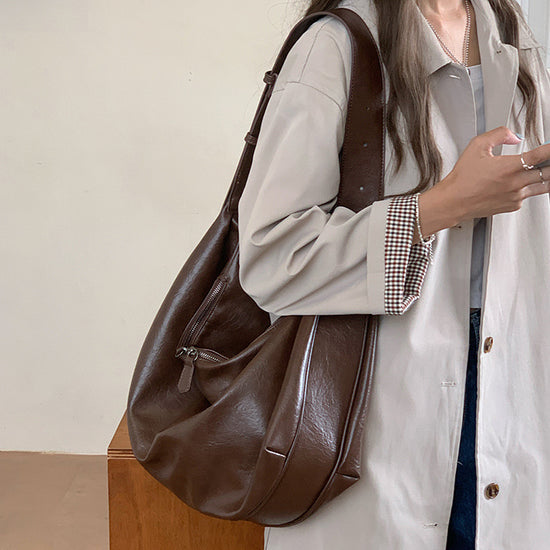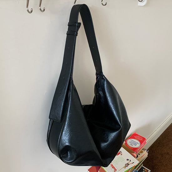 日韓流行|軟皮大容量黑色餃子包包女2025新款復古通勤休閒單肩斜挎托特包「D9023」25.08-2