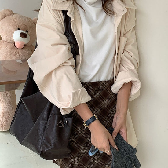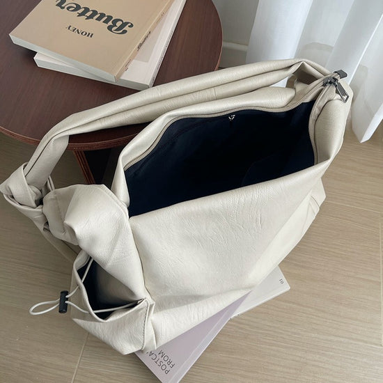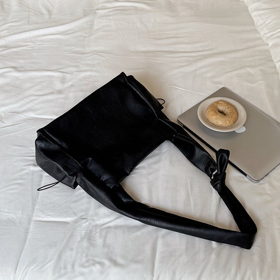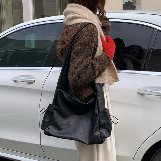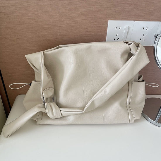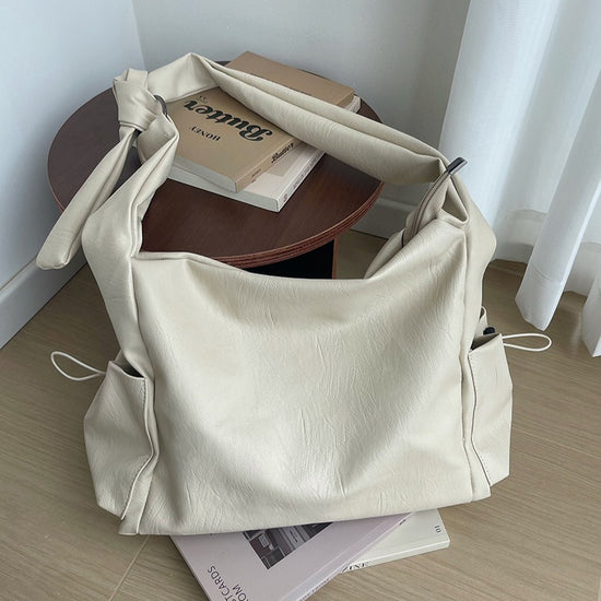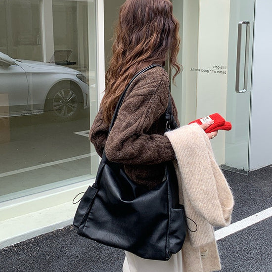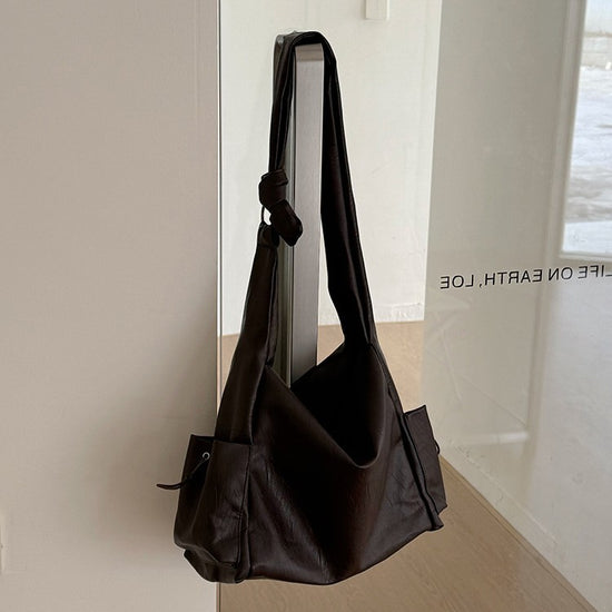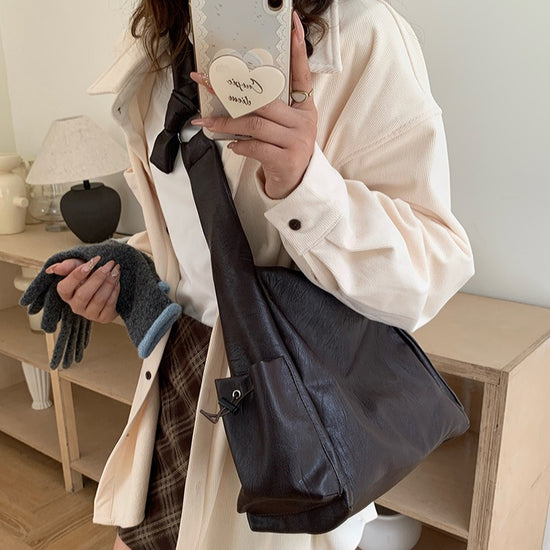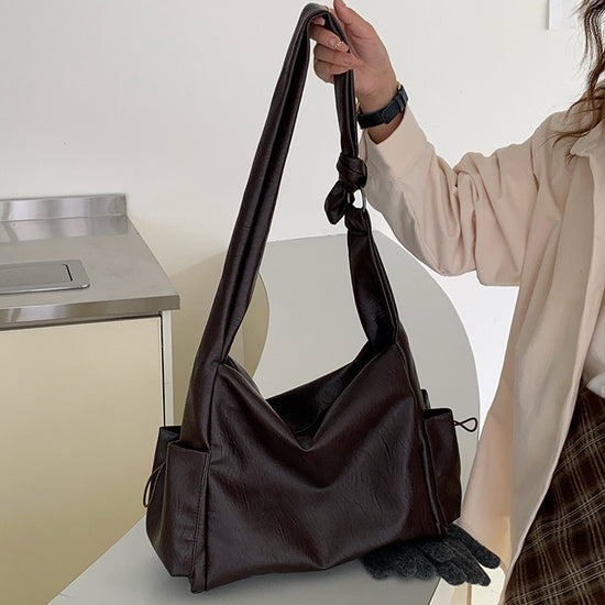 日韓流行|韓版大容量托特包女2025秋冬打結復古慵懶軟皮質感單肩斜挎包「D9042」25.11-1