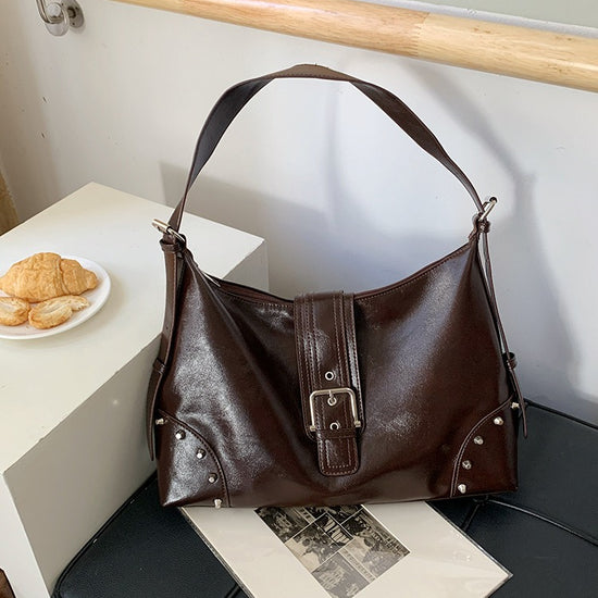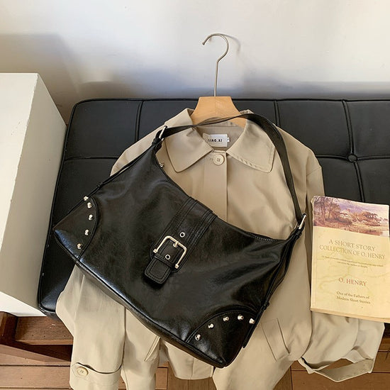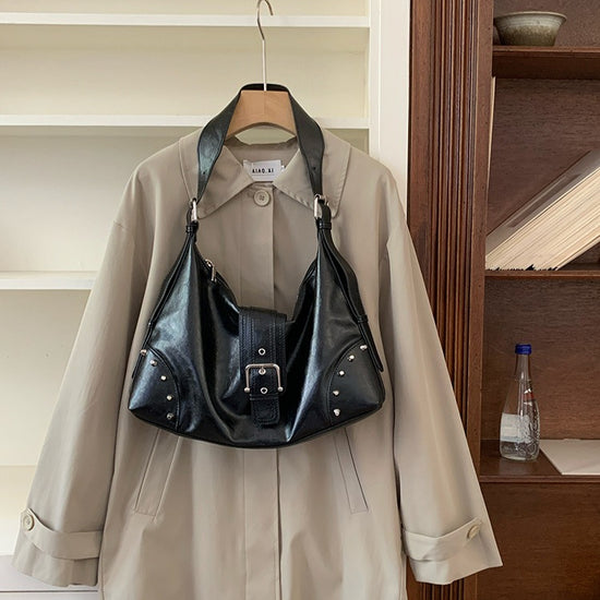 日韓流行|小眾通勤百搭復古高級感鉚釘腋下包2025新款百搭手提單肩斜挎包「D9046」25.11-4