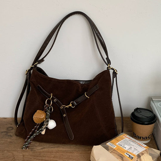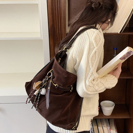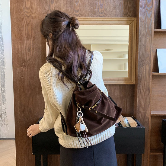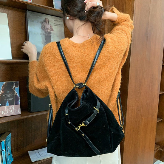 日韓流行|秋冬新款麂皮絨多功能背包大容量休閒單肩斜挎通勤托特包雙肩背包「D9047」25.11-4