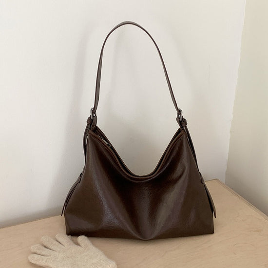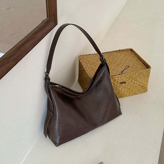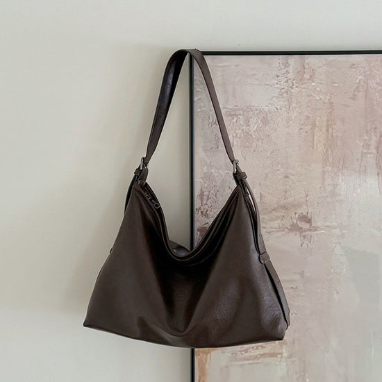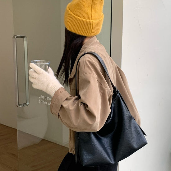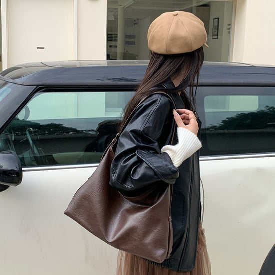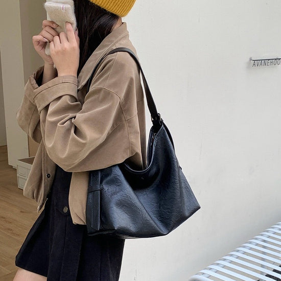 日韓流行|韓系慵懶風軟皮單肩包女百搭大容量托特包ins時尚復古通勤斜挎包「D9049」25.11-4