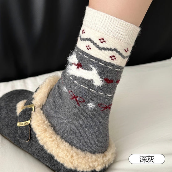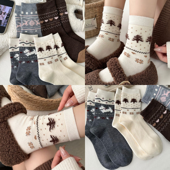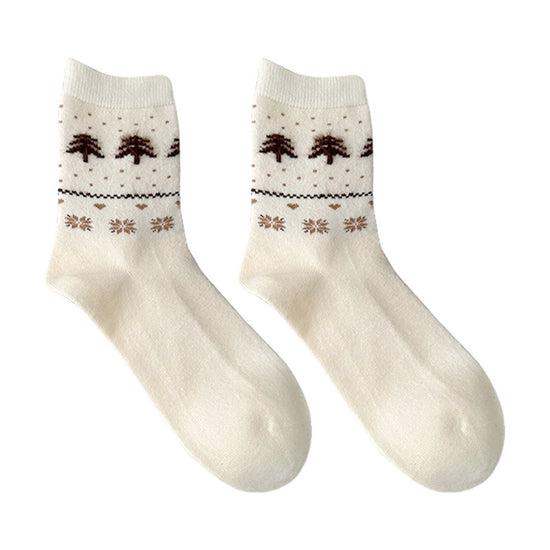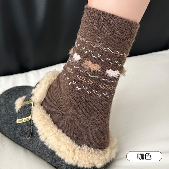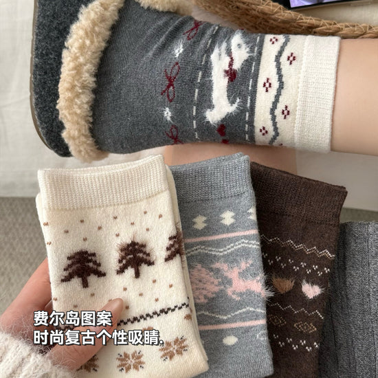 女襪|襪子女士復古費爾島加厚保暖羊毛襪ins通勤簡約彈力中筒襪「DMS5053」25.11-4