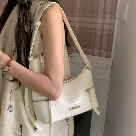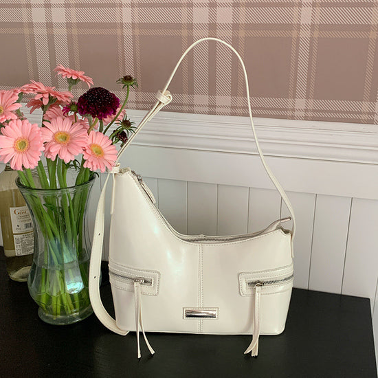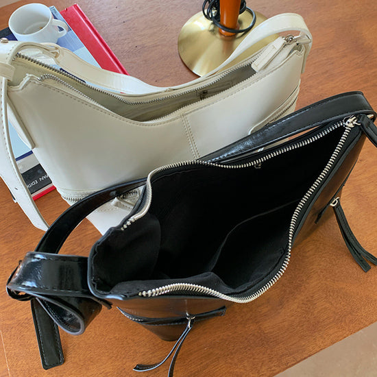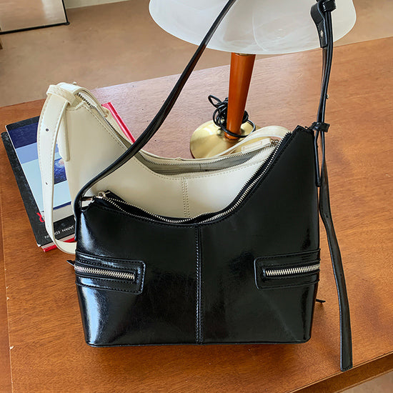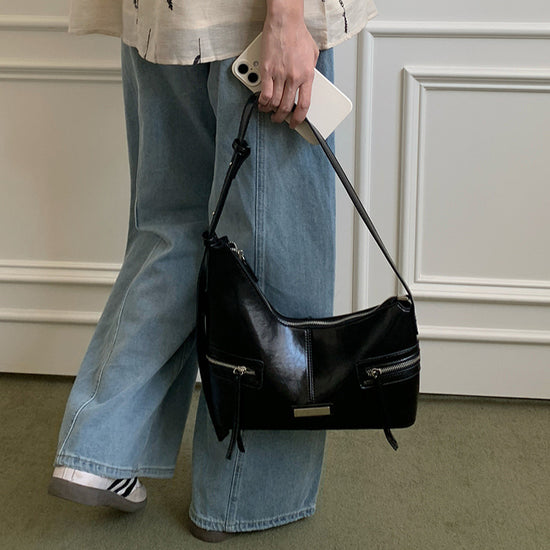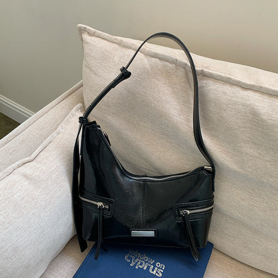 日韓流行|韓國小眾辣妹風Y2K潮酷單肩包腋下餃子包高級感黑色百搭新月包女「F9012」25.07-4