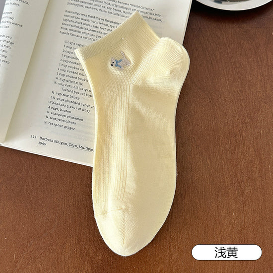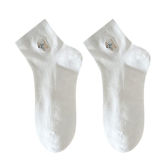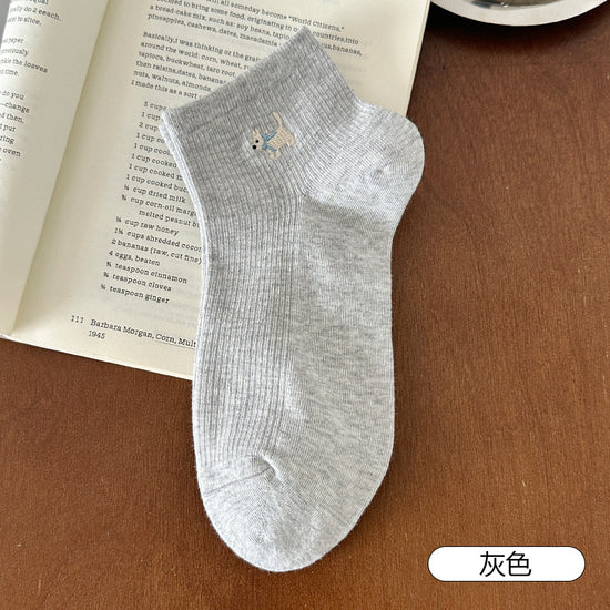 女襪|白色襪子女夏季薄款卡通刺繡小狗彈力短襪棉質吸汗透氣舒適運動襪「FKF2508」25.06-3