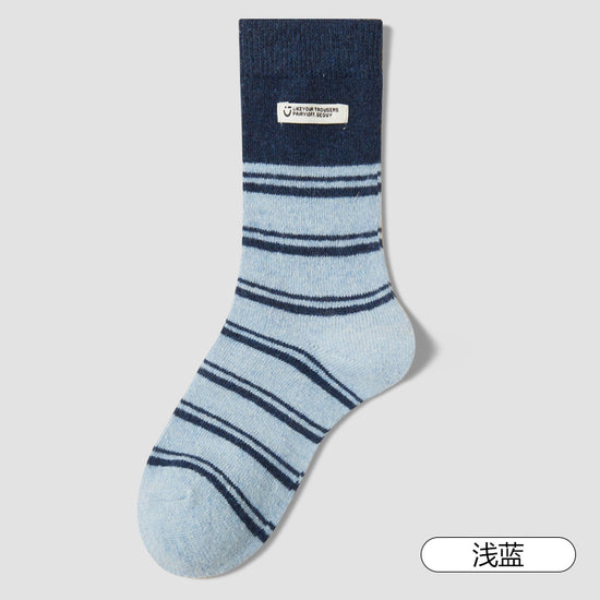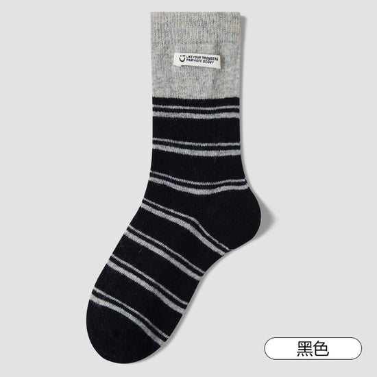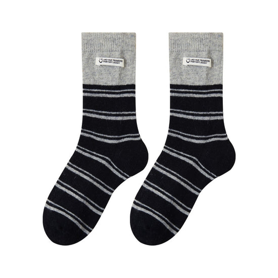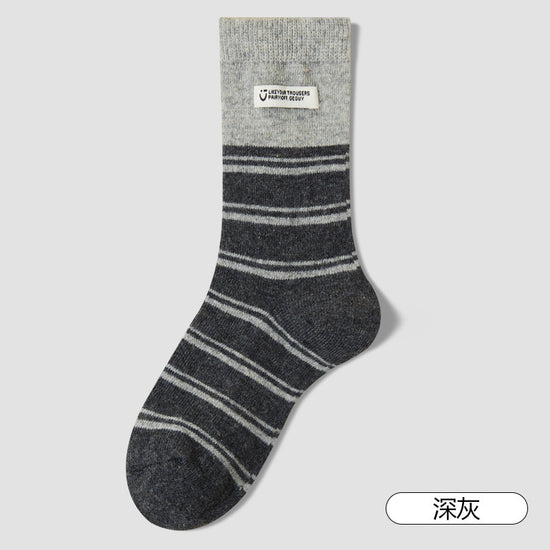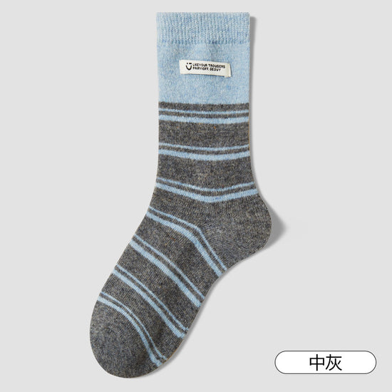 女襪|布標條紋襪子女冬季加絨加厚保暖美利奴羊毛襪親膚舒適彈力中筒襪「GO25106」25.12-1