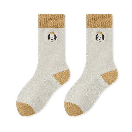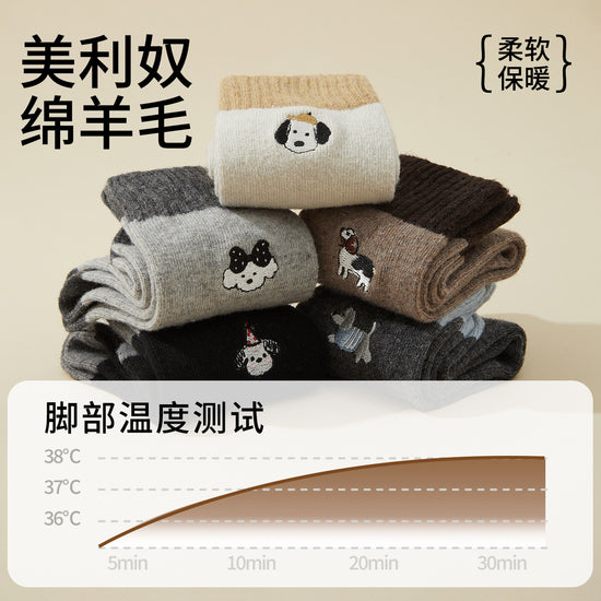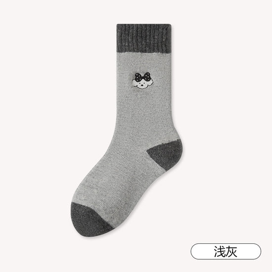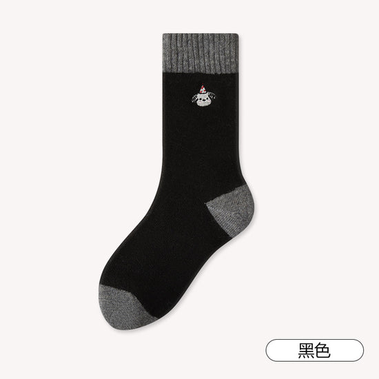 女襪|美利奴羊毛襪子女ins潮拼色卡通刺繡中筒襪秋冬季加厚保暖堆堆襪「GO2570」25.12-2