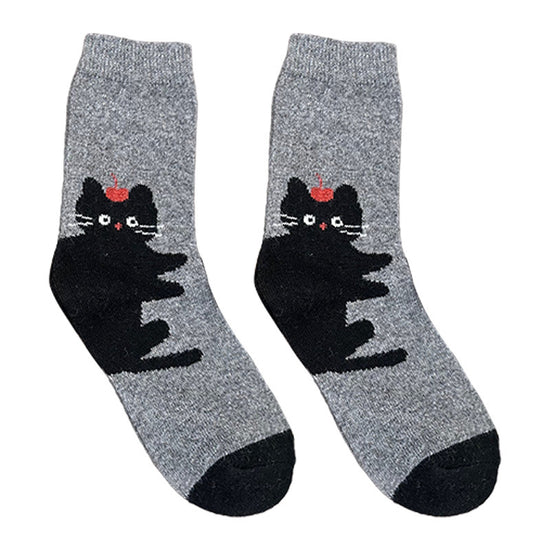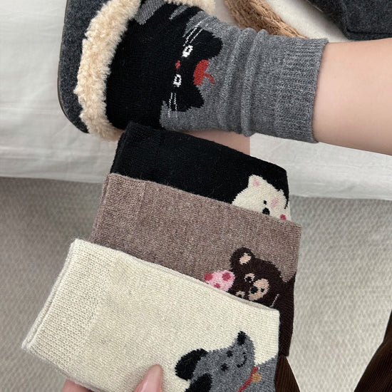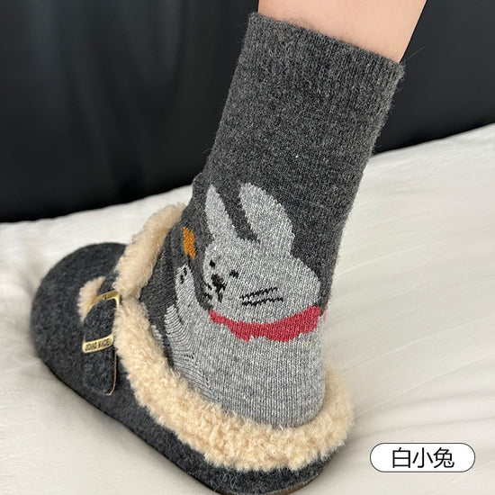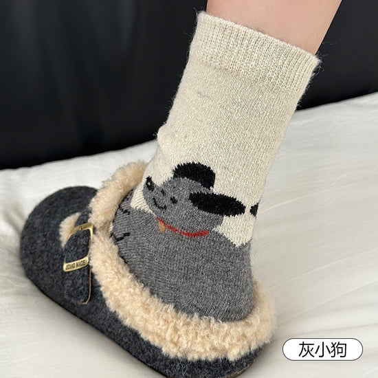 女襪|後跟卡通圖案襪子女冬季加厚保暖羊毛襪日系學院風彈力舒適中筒襪「GO2585」25.11-4