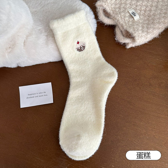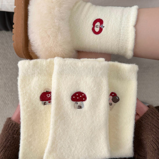 女襪|白色澳絨襪子女秋冬季加絨加厚保暖中筒襪可愛卡通刺繡諸暨襪子「H5785」25.11-3