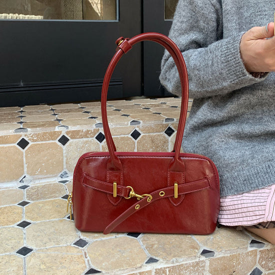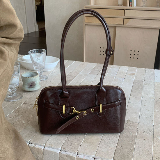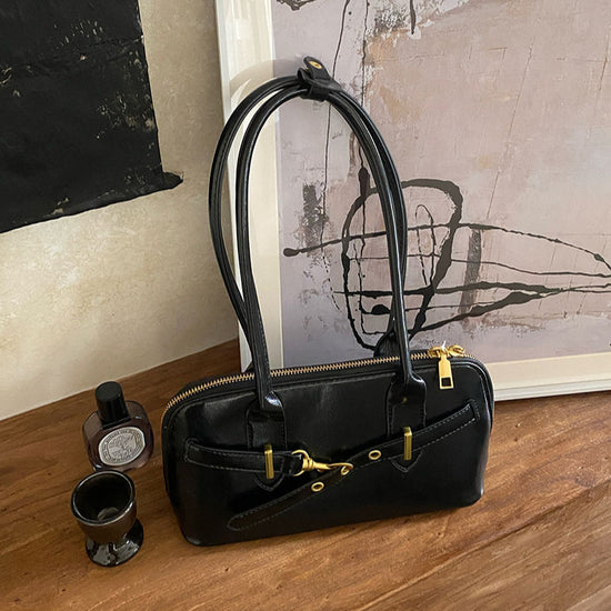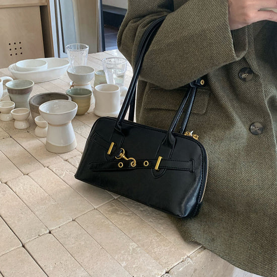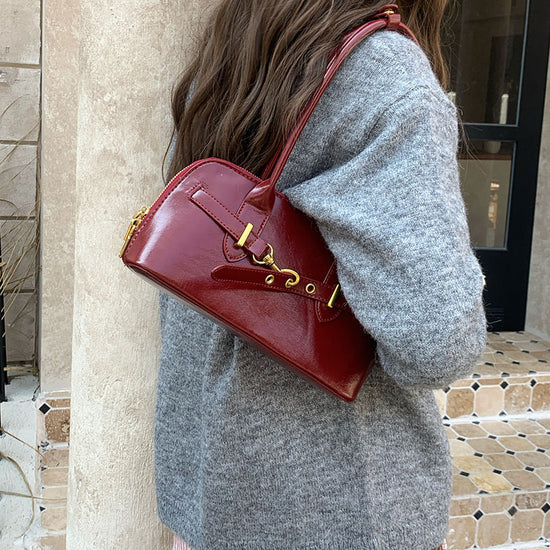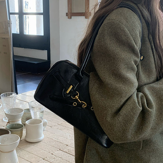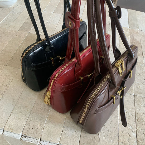 日韓流行|復古手提通勤包包女秋季2024新款潮韓版小眾腋下包漆皮保齡球包「H8918」24.10-3