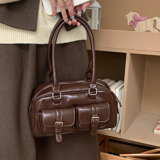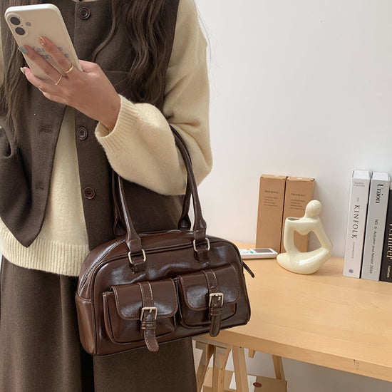 日韓流行|2024新秋冬大容量韓國ins復古保齡球手提單肩包時尚通勤腋下包「H8936」24.11-4