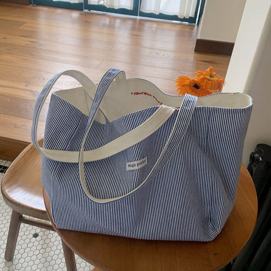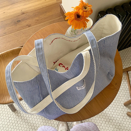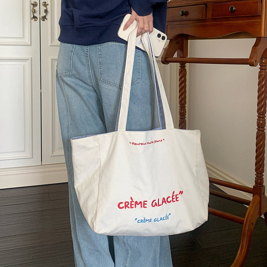 日韓流行|原創雙面背 加厚刺繡韓版文藝休閒帆布單肩學生大容量百搭托特包「H9015」25.07-3