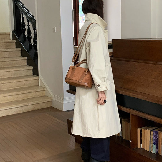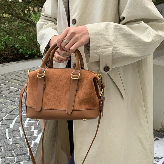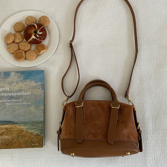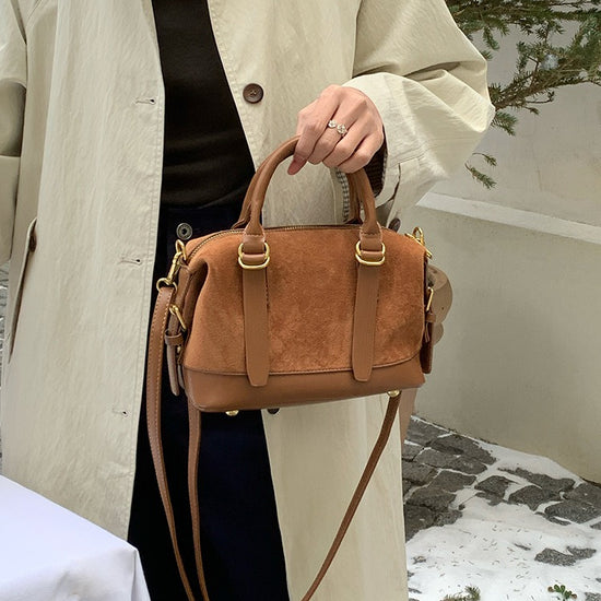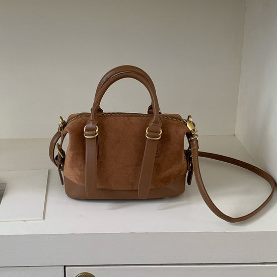 日韓流行|復古棕色麂皮絨手提包包女冬季2025新款潮韓版保齡球包多功能斜挎包「H9051」25.12-1