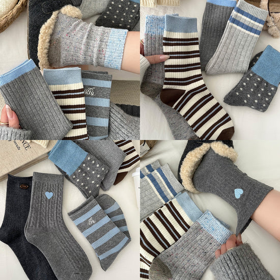 愛心灰,波點藍,點子紗,二槓藍,蝴蝶結,灰竪條,卷邊藍,藍咖條,藍條紋,藍襪口,紐扣