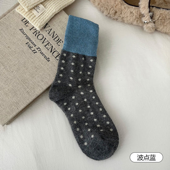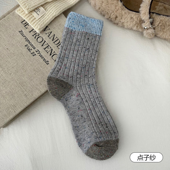 女襪|灰色羊毛襪子女冬季加絨加厚保暖愛心蝴蝶結堆堆襪彈力親膚中筒襪「HD25856」25.11-2