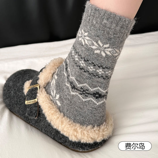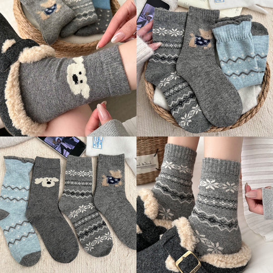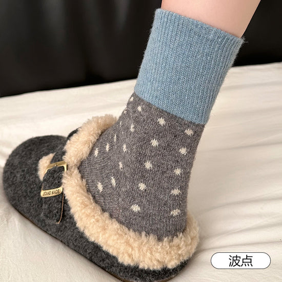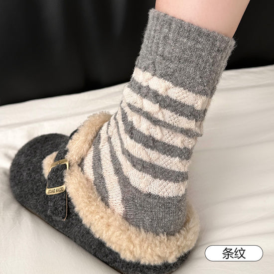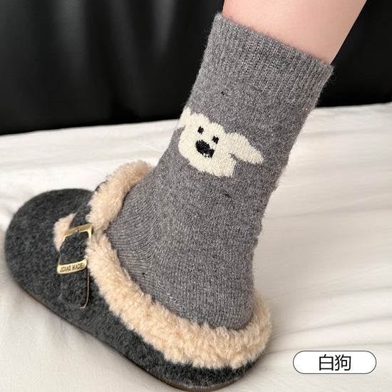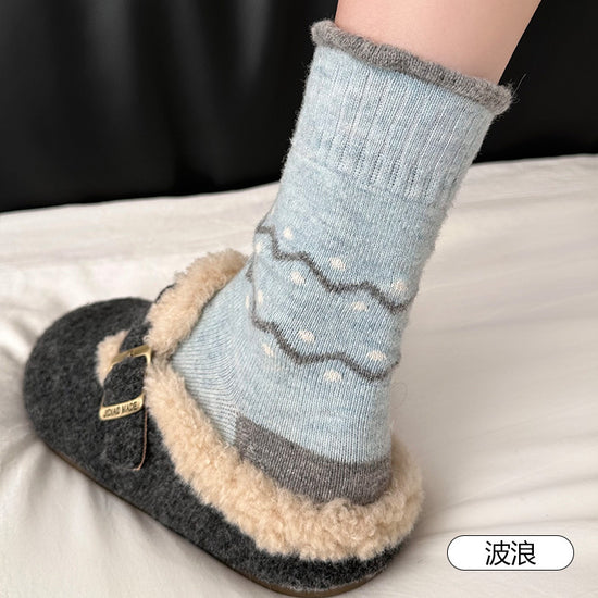 女襪|加厚羊毛襪子女日系保暖可愛卡通堆堆襪軟糯親膚舒適彈力中筒襪「HD25868」25.12-1