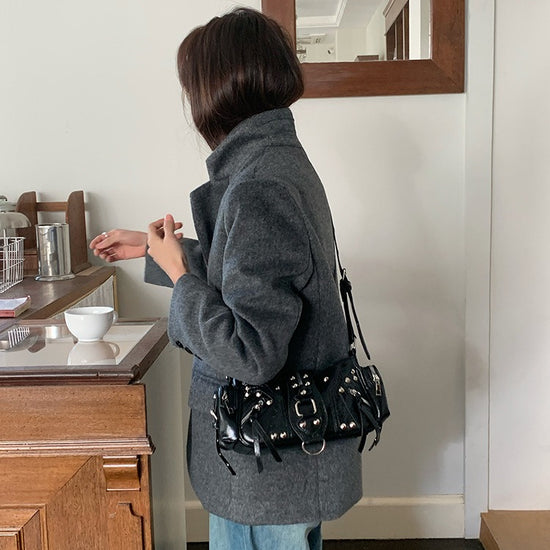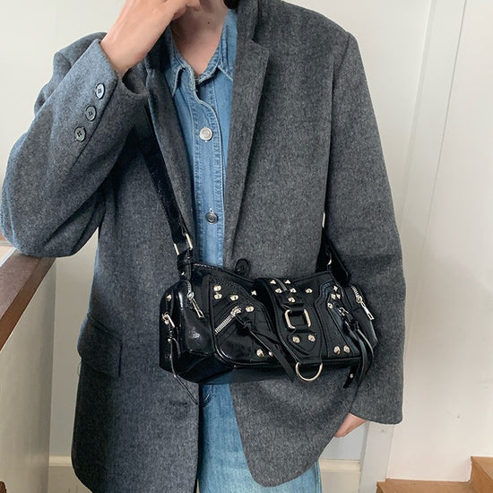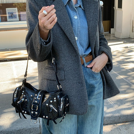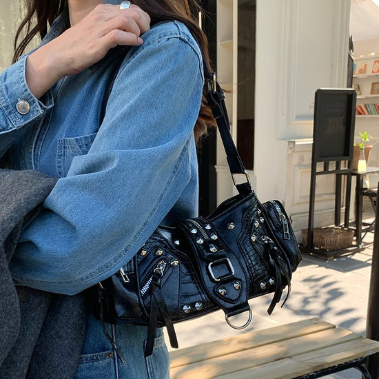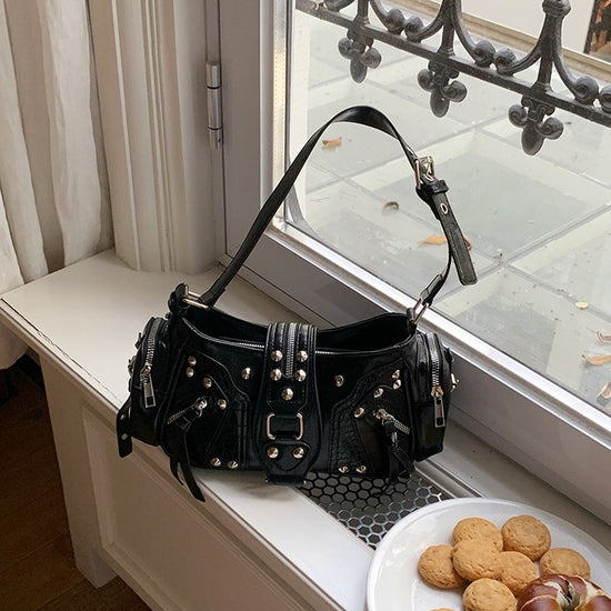 日韓流行|甜酷辣妹腋下包小眾設計感百搭重工機車包包復古通勤單肩斜挎包女「J9044」25.11-1