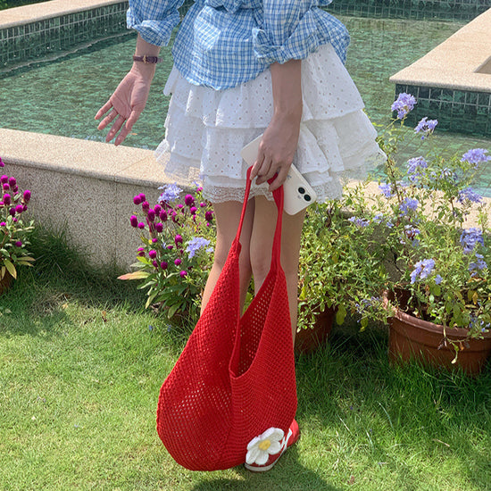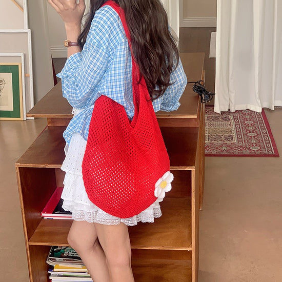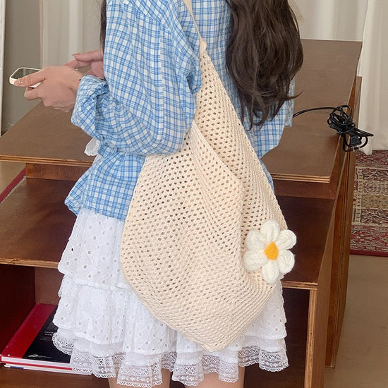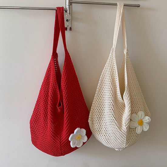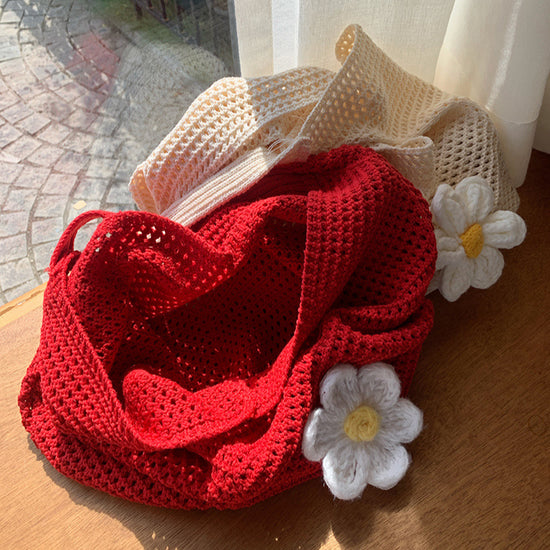 日韓流行|夏季新款大容量編織包海邊度假花朵針織沙灘包時尚單肩通勤托特包「L9013」25.07-3