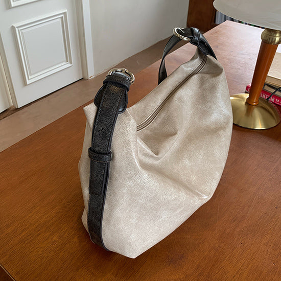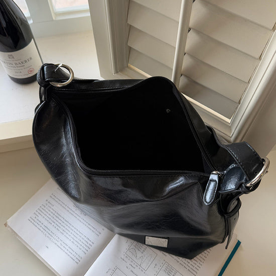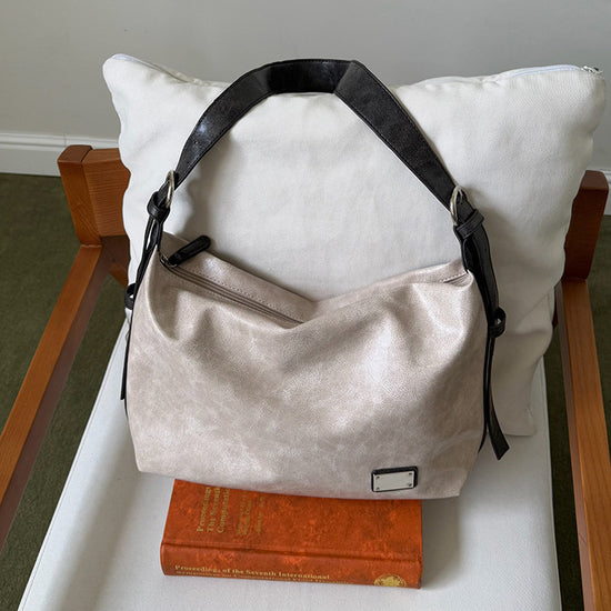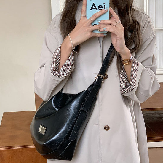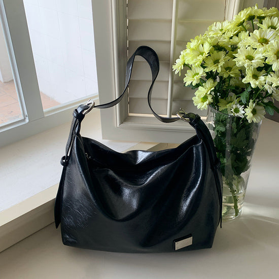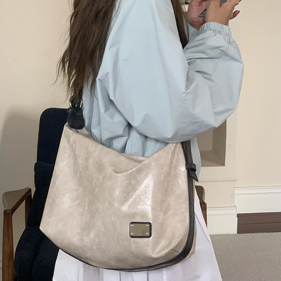 日韓流行|韓版百搭軟皮包包女2025新款通勤上課大容量托特包復古單肩斜挎包「L9019」25.08-1