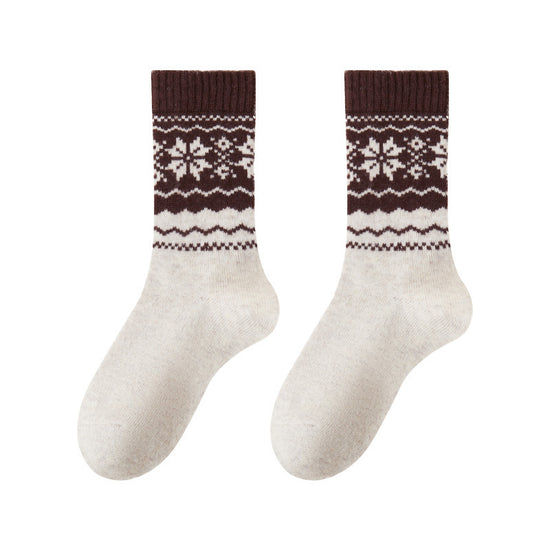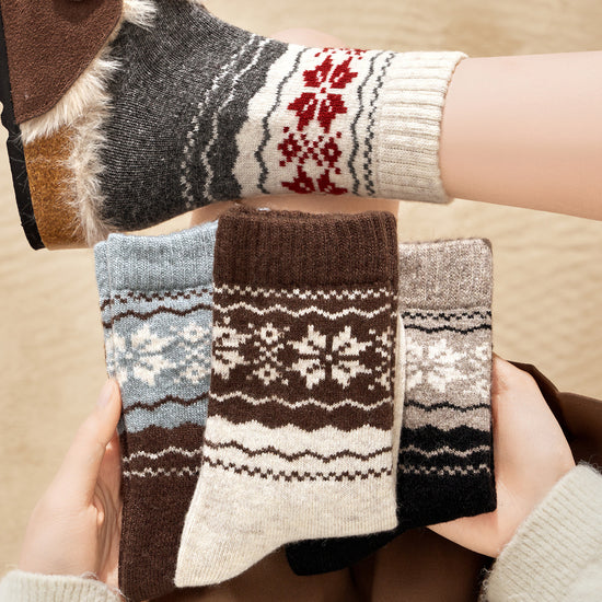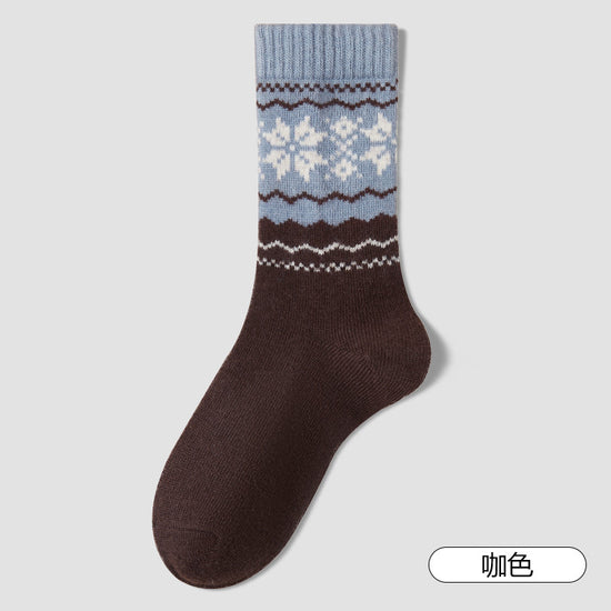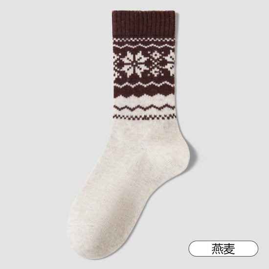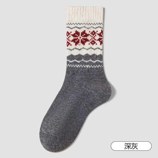 女襪|費爾島復古提花羊毛襪子女秋冬加厚保暖堆堆襪日系百搭彈力中筒襪「LM9216」25.11-4