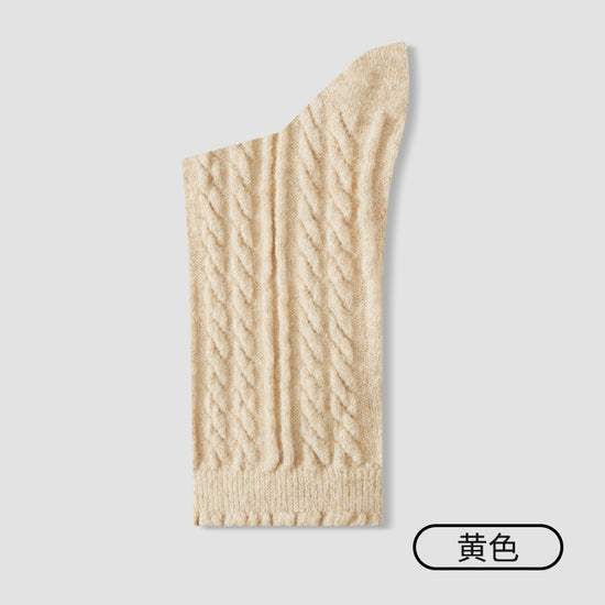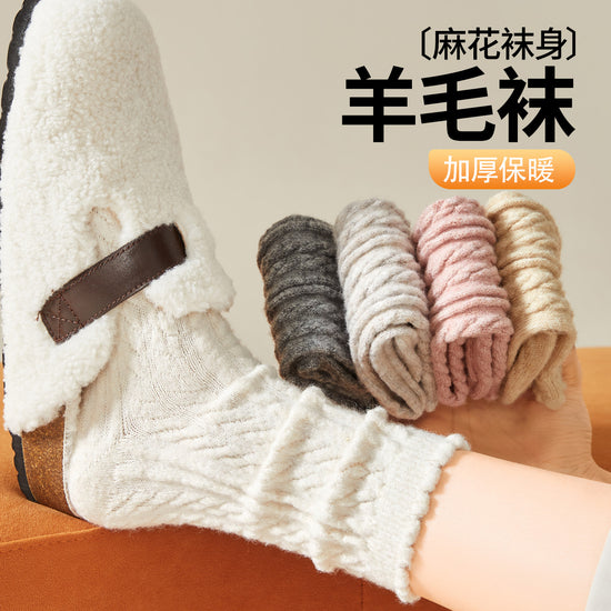 女襪|襪子女加厚保暖蓄熱鎖溫麻花羊毛襪彈力花邊親膚舒適堆堆襪「M3166」25.10-4