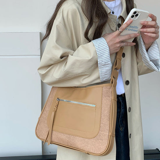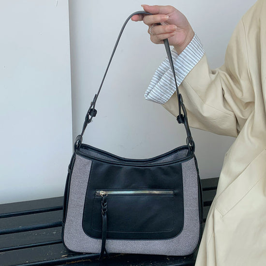 日韓流行|秋冬新款復古時尚撞色馬鞍包小眾通勤包包女百搭休閒單肩斜挎包「M8909」24.09-4