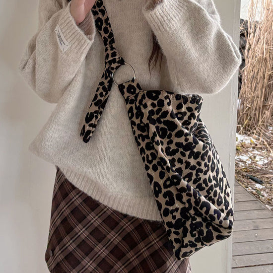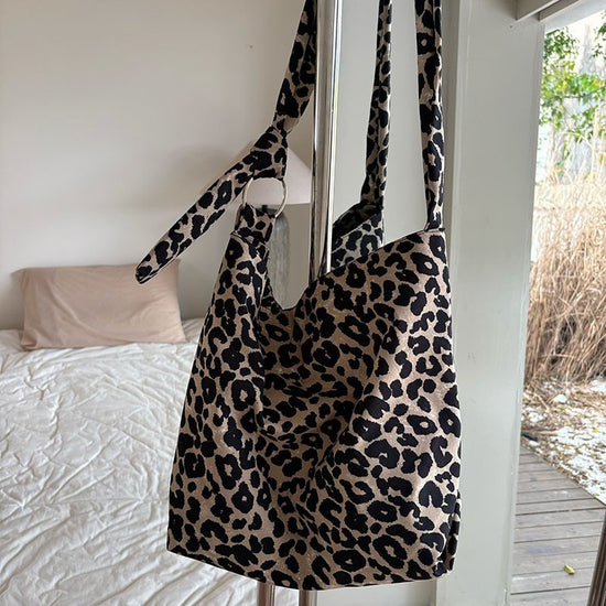 日韓流行|2024秋冬新款時尚韓系ins風慵懶感豹紋布袋女包單肩斜挎大容量托特包「M8928」24.11-1