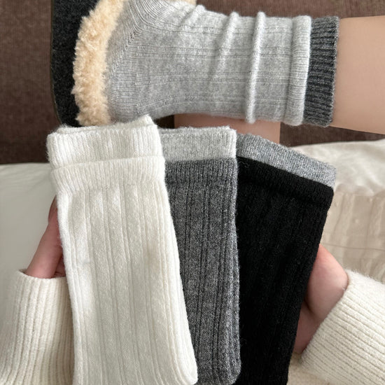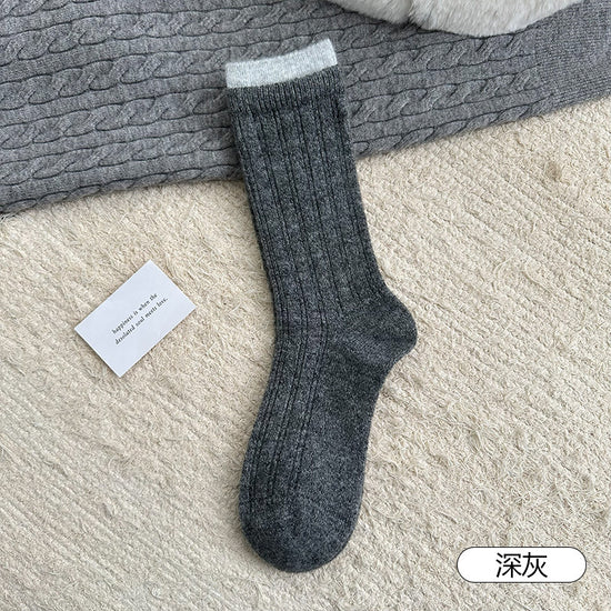 女襪|襪子女士撞色雙羅口親膚舒適堆堆襪蓄熱鎖溫保暖美利奴羊毛襪「MK5179」25.11-1
