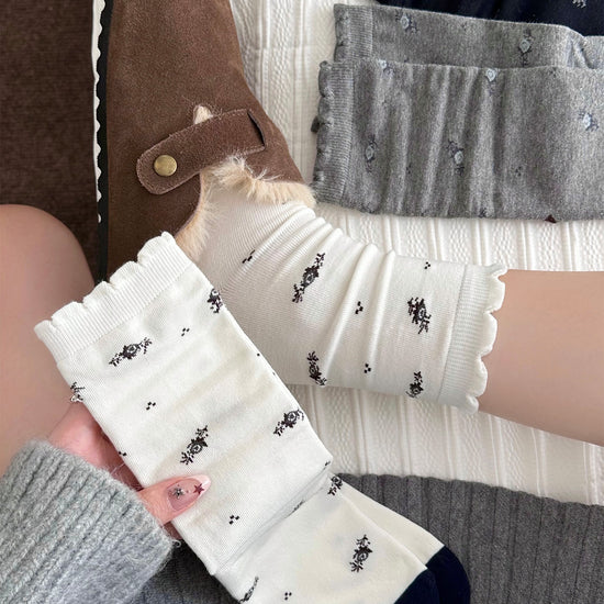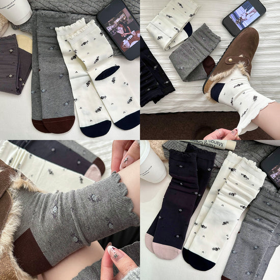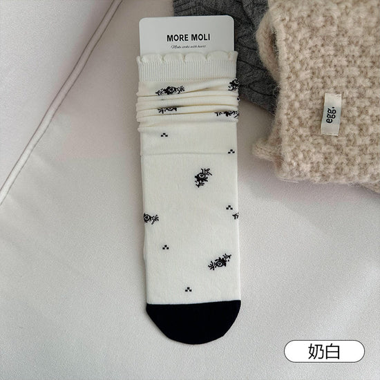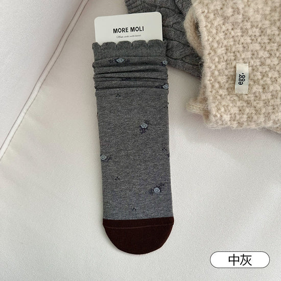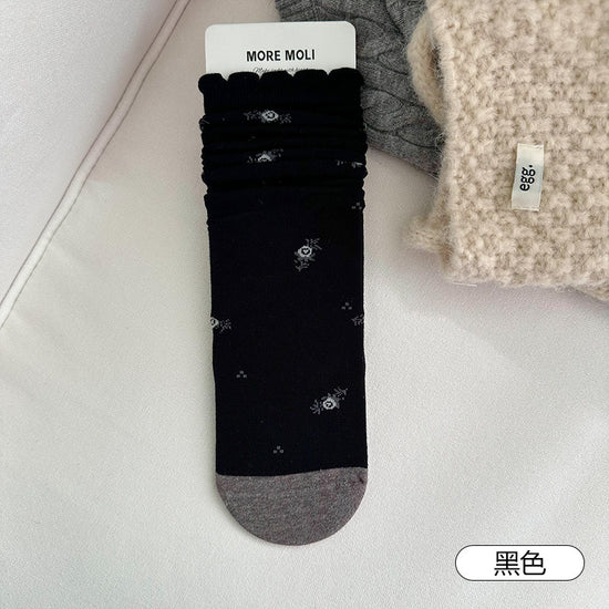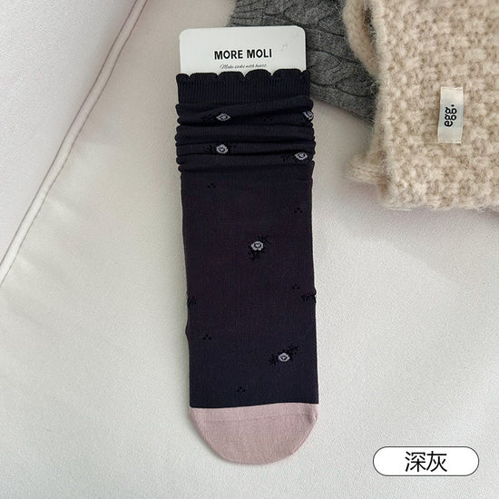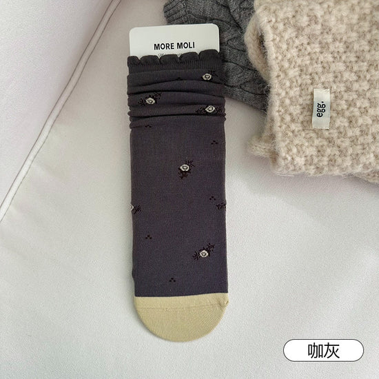 女襪|襪子女士復古小碎花吸汗透氣中筒襪親膚舒適ins潮花邊堆堆襪「NY2681」25.10-3