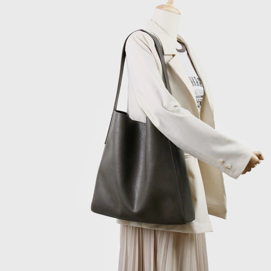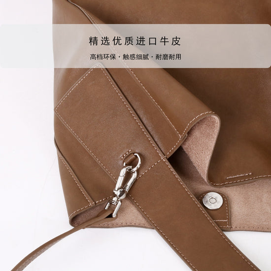 質感真皮|2025新款高質感軟牛皮慵懶大容量通勤休閒斜挎包托特包時尚單肩腋下包「OS83316」25.10-4