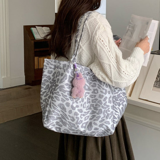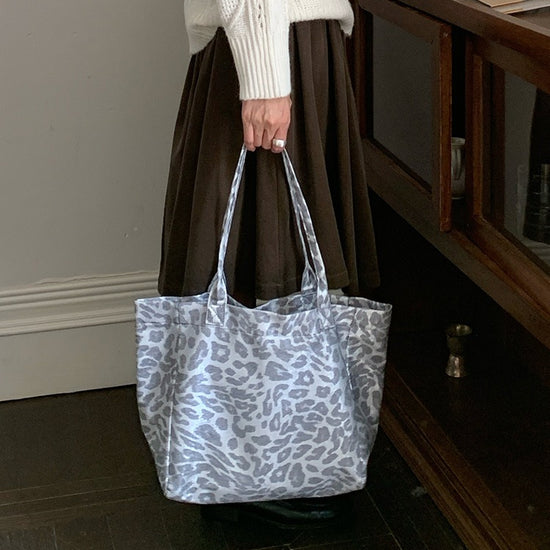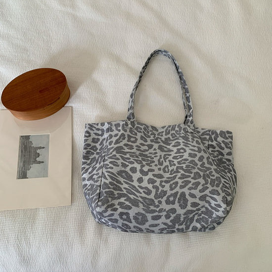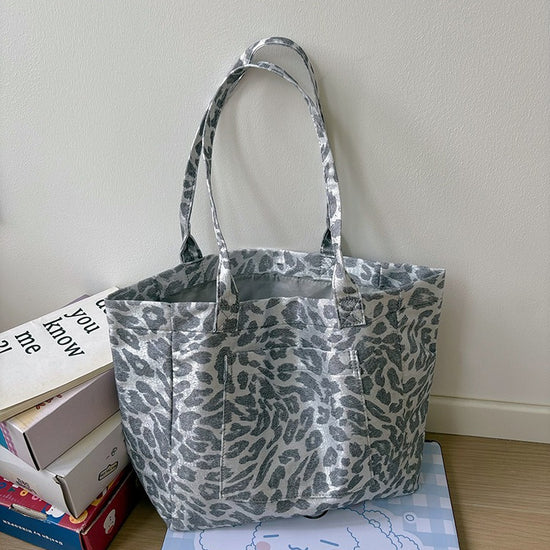 日韓流行|銀色豹紋帆布單肩包2025新款大容量通勤百搭時尚托特包手提購物袋「Q9040-S」25.10-1
