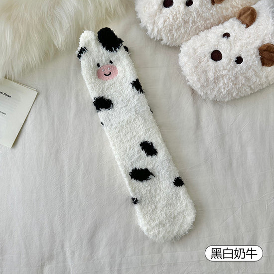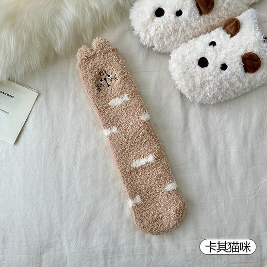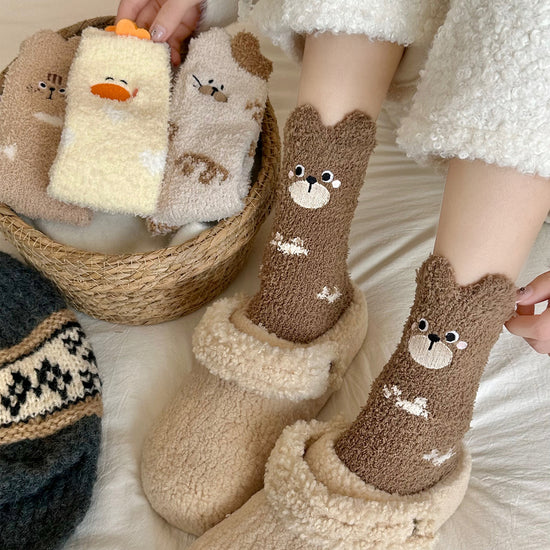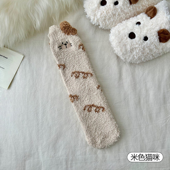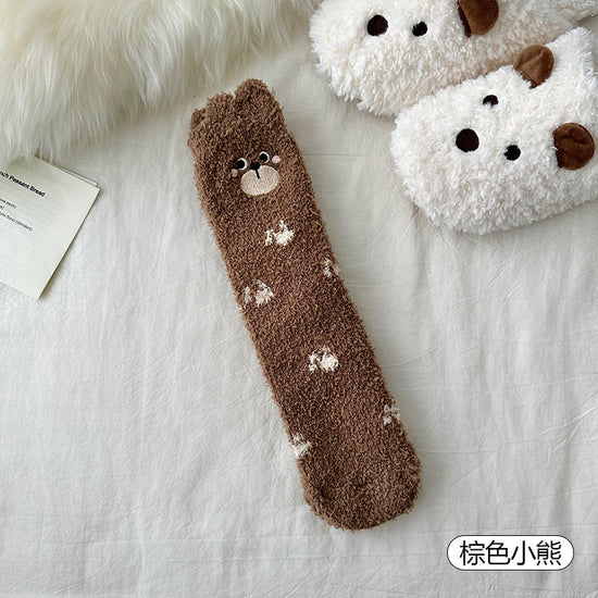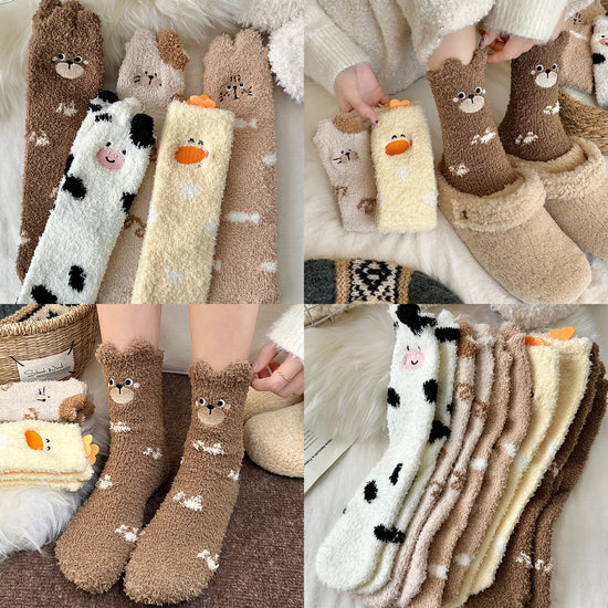 女襪|冬季襪子女軟糯舒適居家保暖地板襪立體卡通圖案加絨加厚睡眠襪「QZ2578」25.11-2