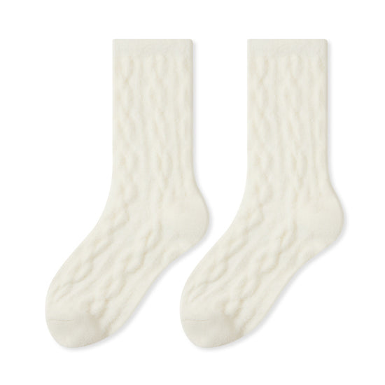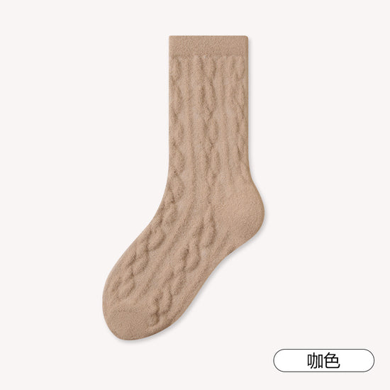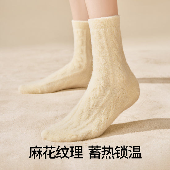 女襪|澳絨睡眠襪子女冬季加厚保暖中筒襪糖果色麻花紋理居家蓄熱地板襪「TM3599」25.12-1