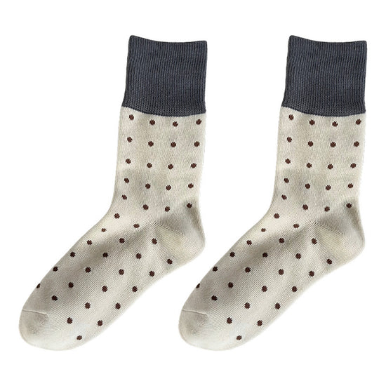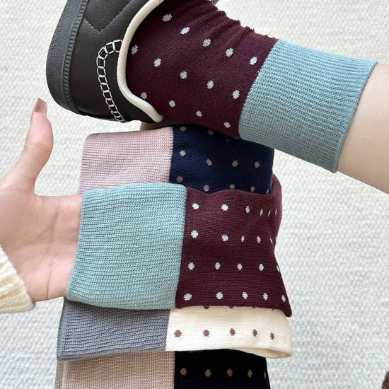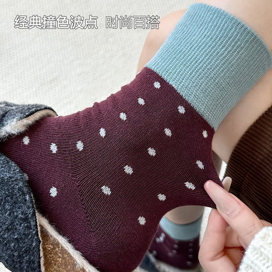 女襪|襪子女士經典撞色波點個性復古堆堆襪秋冬季保暖學院風中筒襪「YJ23128」25.10-1