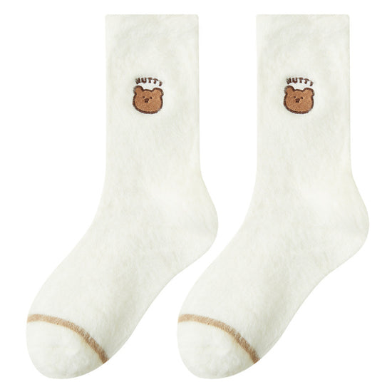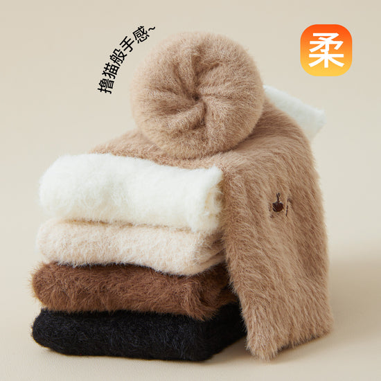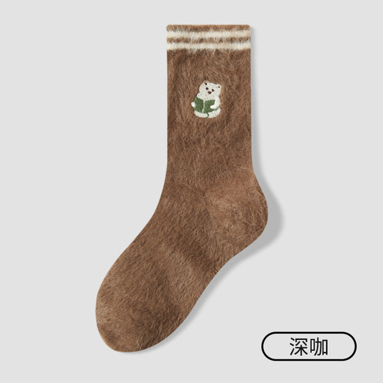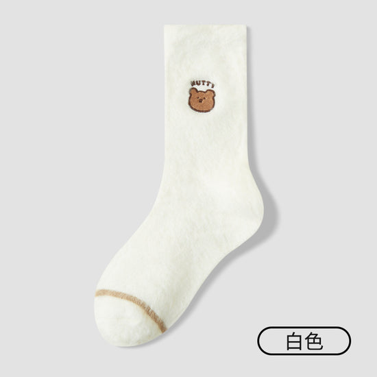 女襪|水貂絨襪子女冬季加絨加厚居家保暖地板襪卡通刺繡親膚舒適堆堆襪「YM1159」25.11-1